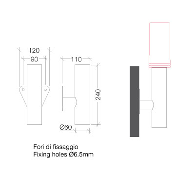 Attacco a pareteDati tecnici - Accessorio per utilizzo a parete - Verniciatura a polvere con pretattamento specifico per esterni - Attacco a parete per un solo apparecchio - Staffa di fissaggio a parete in acciaio inox AISI 304