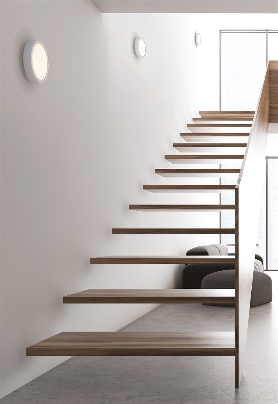 Plafoniera per installazione a parete o soffitto, con temperatura colore 3000 K/4000 K selezionabile tramite CCT switch. Realizzata in materiale plastico, con fondello in ABS colorato in pasta e diffusore in policarbonato traslucido stabilizzato ai raggi UV. Driver integrato. Particolarmente indicata per installazione in zone saline.