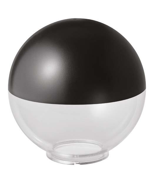 Sfera in PMMA con collo a baionetta particolarmente indicata per installazione in zone saline -serie 2050, 2065, 2066-. Base per montaggio diritto o rovesciato su pali e bracci Ø60mm in tecnopolimero rinforzato, completa di espansori per fissaggio interno e cono di copertura in policarbonato -serie 2000-. Accessori frangiluce in alluminio verniciato da ordinare separatamente.